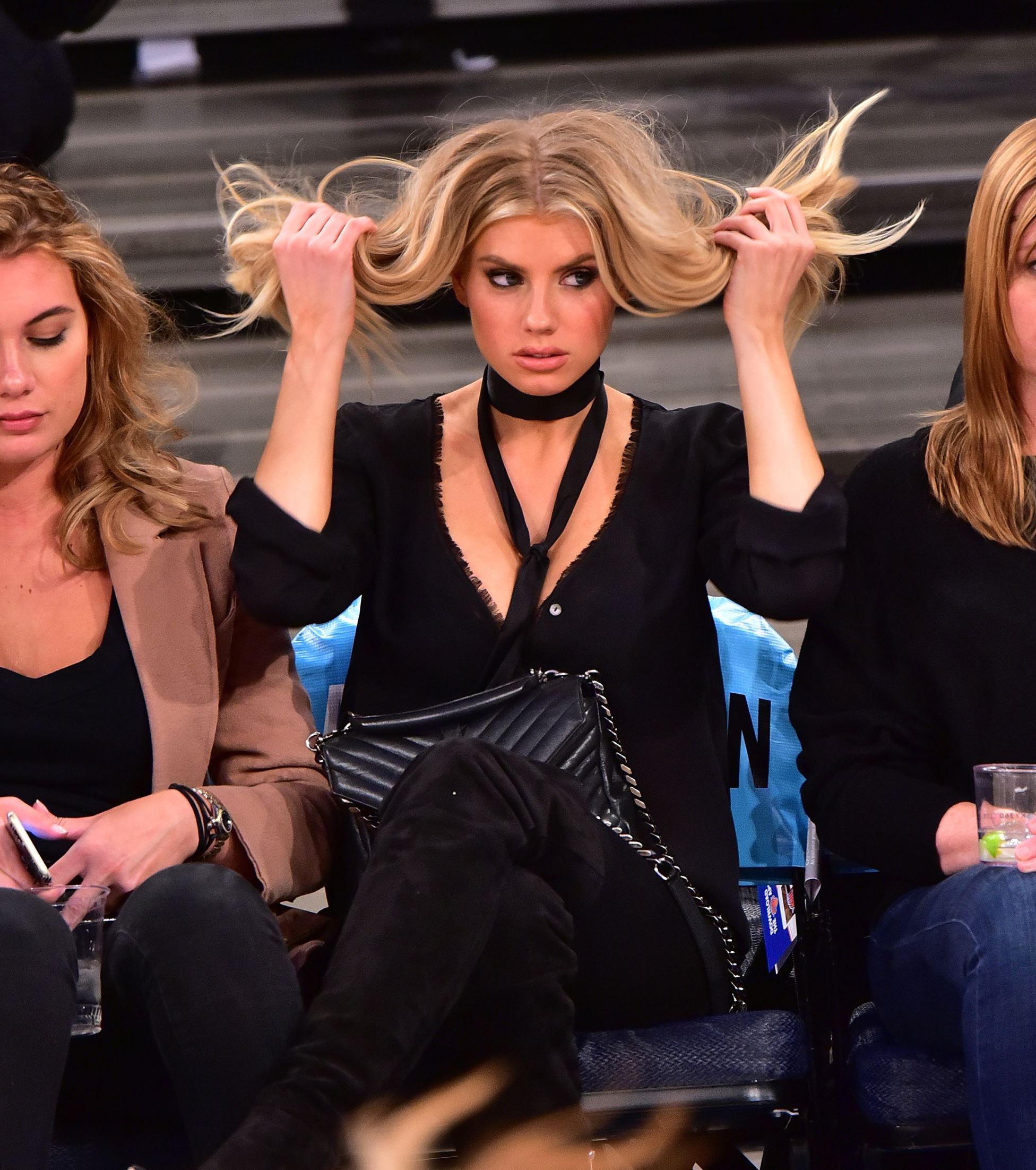 | Charlotte McKinney menghadiri laga Boston Celtics vs New York Knicks di New York City. |