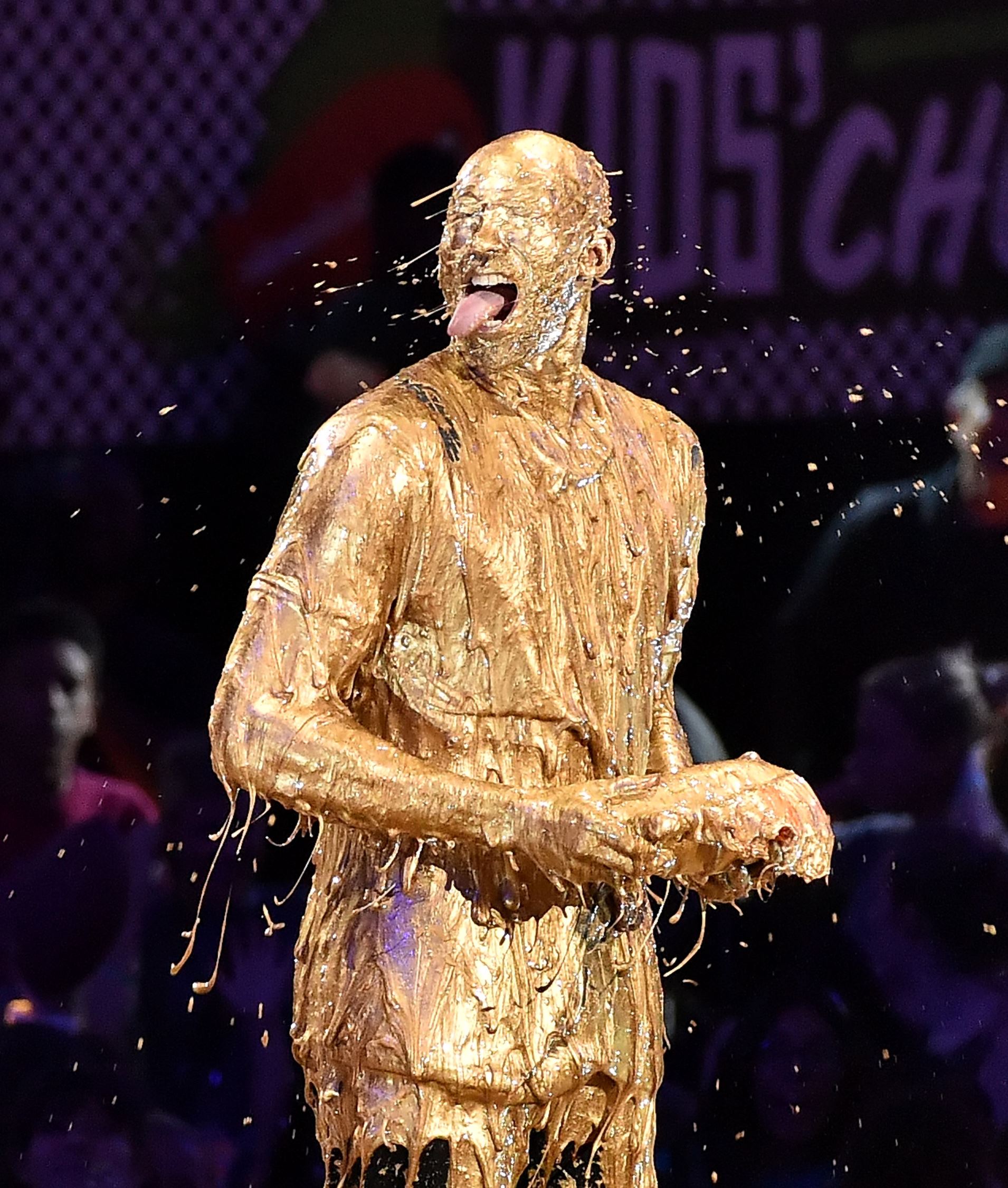 | Kobe Bryant menerima Legend Award dan kemudian dirinya dituangi cairan dalam acara Nickelodeon Kids' Choice Sports Awards 2016 di Westwood, California, AS |